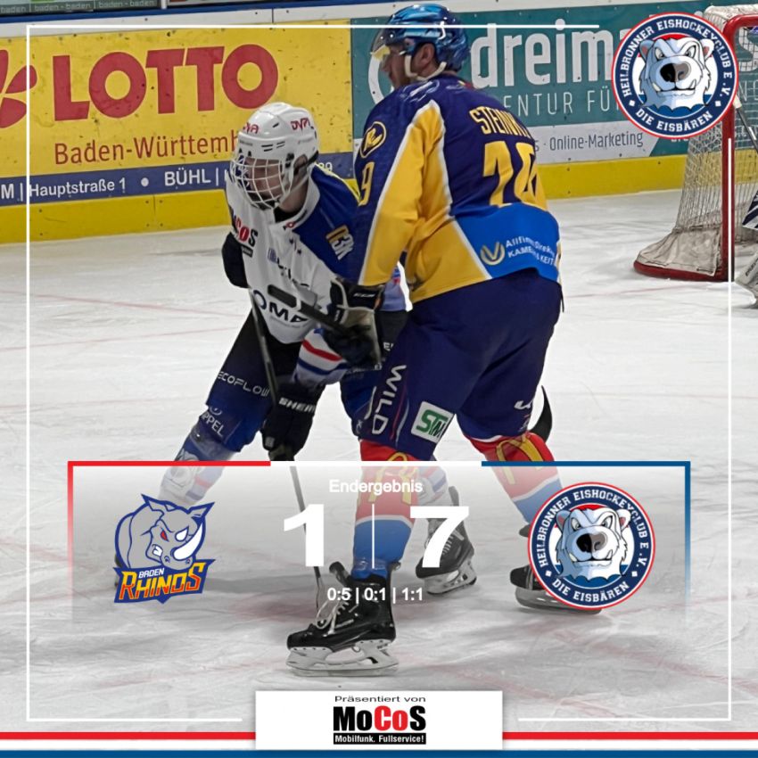 Die Eisbären Heilbronn haben einen perfekten Start in die Halbfinalserie der Regionalliga Südwest hingelegt und die Baden Rhinos im ersten Spiel mit 7:1 (4:0, 2:0, 1:1) auswärts bezwungen.